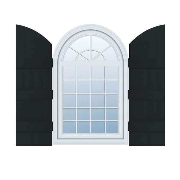 14 in. x 85 in. Lifetime Vinyl Standard Four Board Joined w/ Archtop Board and Batten Shutters Pair Black