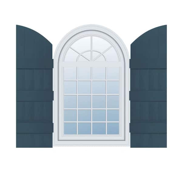 14 in. x 89 in. Lifetime Vinyl Standard Four Board Joined w/ Archtop Board and Batten Shutters Pair Classic Blue