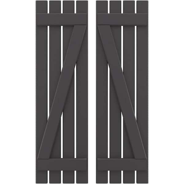 15-1/2 in. W x 34 in. H Americraft 4 Board Exterior Real Wood Spaced Board and Batten Shutters w/Z-Bar Shadow Mountain