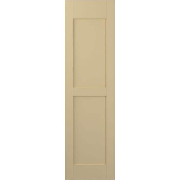 15 in. W x 77 in. H Americraft 2 Equal Flat Panel Exterior Real Wood Shutters Pair in Natural Twine