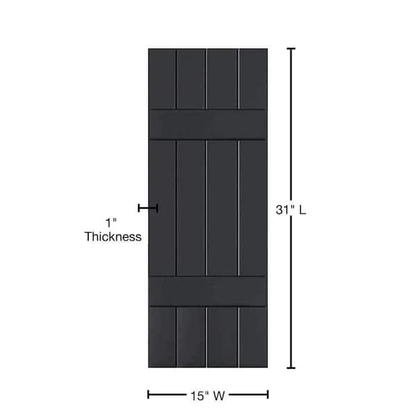 15 in. x 31 in. Exterior Real Wood Pine Board and Batten Shutters Pair Black