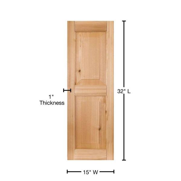 15 in. x 32 in. Exterior Real Wood Pine Raised Panel Shutters Pair Unfinished