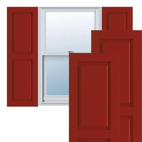 15 in. x 33 in. True Fit PVC 2 Equal Raised Panel Shutters Pair in Fire Red
