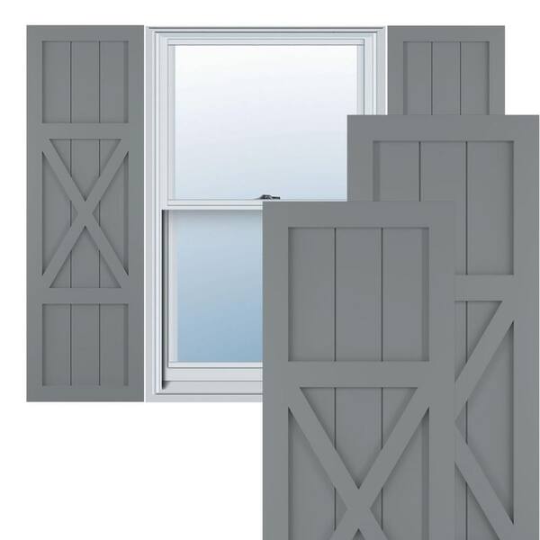 15 in. x 33 in. True Fit PVC Center X-Board Farmhouse Fixed Mount Board and Batten Shutters, Ocean Swell (Per Pair)