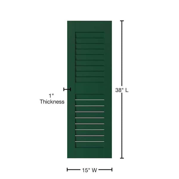 15 in. x 38 in. Exterior Real Wood Pine Louvered Shutters Pair Chrome Green