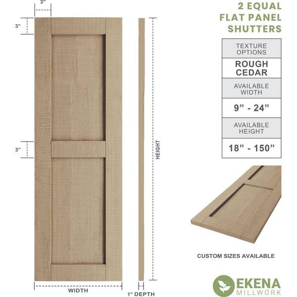15 in. x 38 in. Flat Panel Timberthane Polyurethane 2 Equal Panel Rough Cedar Faux Wood Shutters Pair