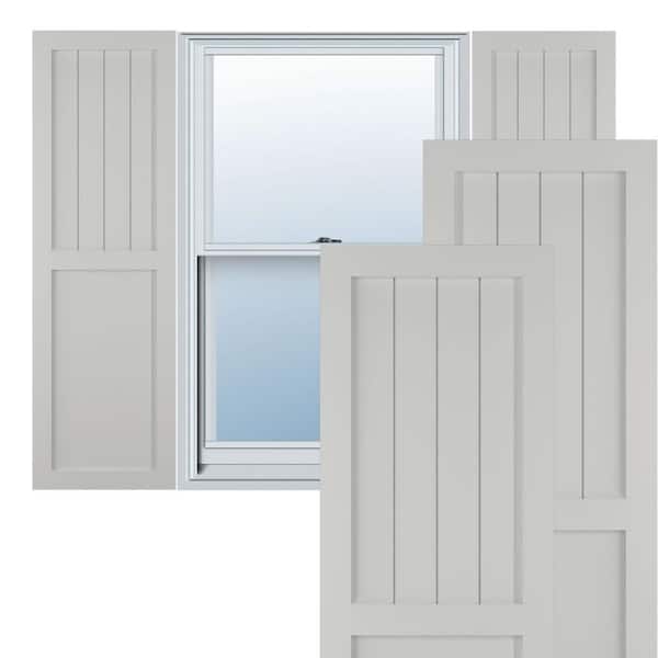 15 in. x 42 in. PVC True Fit Farmhouse/Flat Panel Combination Fixed Mount Board & Batten Shutters Pair in Hailstorm Gray