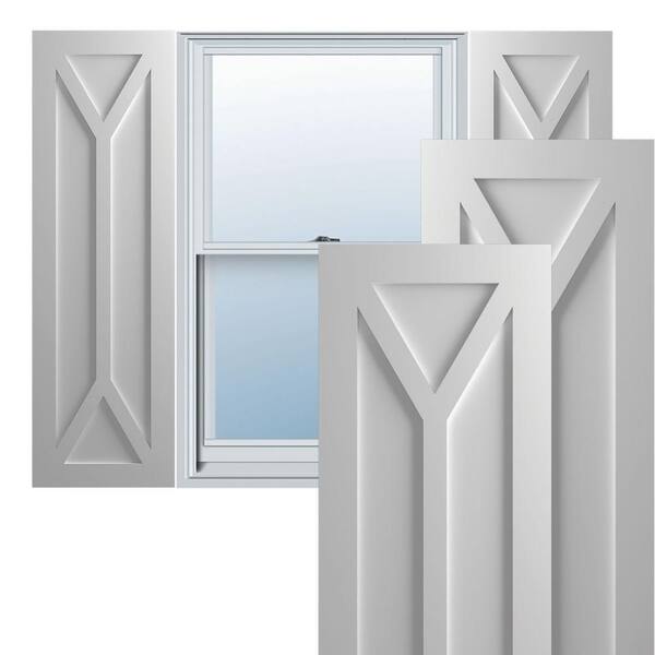 15 in. x 46 in. True Fit Flat Panel PVC San Carlos Mission Style Fixed Mount Shutters Pair in Primed