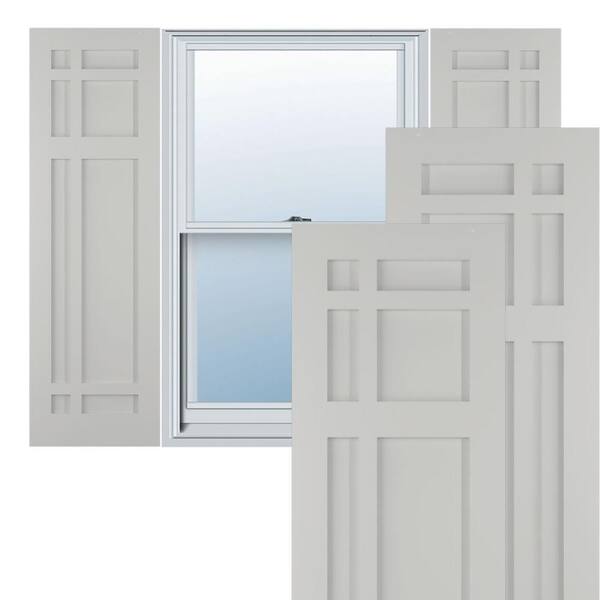 15 in. x 47 in. Flat Panel True Fit PVC San Juan Capistrano Mission Style Fixed Mount Shutters Pair in Hailstorm Gray