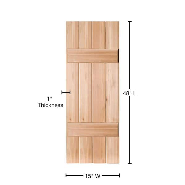 15 in. x 48 in. Exterior Real Wood Pine Board & Batten Shutters Pair Unfinished