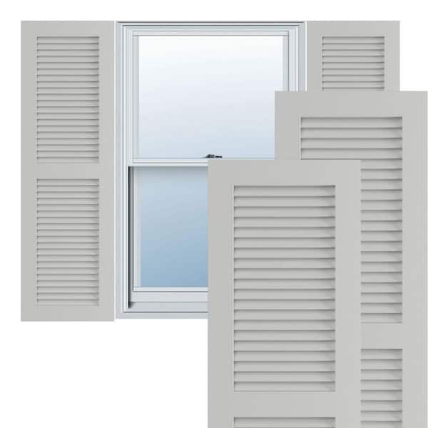 15 in. x 57 in. PVC True Fit Two Equal Louvered Shutters Pair in Hailstorm Gray