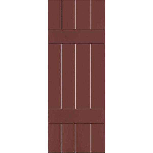 15 in. x 58 in. Exterior Real Wood Sapele Mahogany Board and Batten Shutters Pair Cottage Red