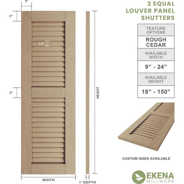 15 in. x 60 in. Timberthane Polyurethane 2-Equal Louver Rough Cedar Faux Wood Shutters Pair