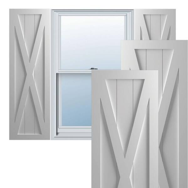 15 in. x 60 in. True Fit PVC Single X-Board Farmhouse Fixed Mount Board and Batten Shutters Pair in Primed