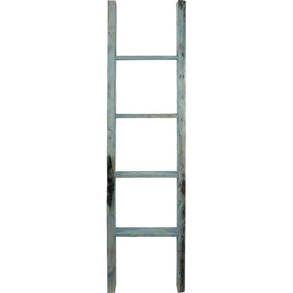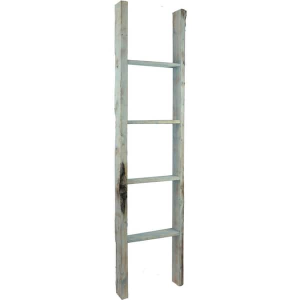 15 in. x 60 in. x 3 1/2 in. Barnwood Decor Collection Driftwood Blue Vintage Farmhouse 4-Rung Ladder