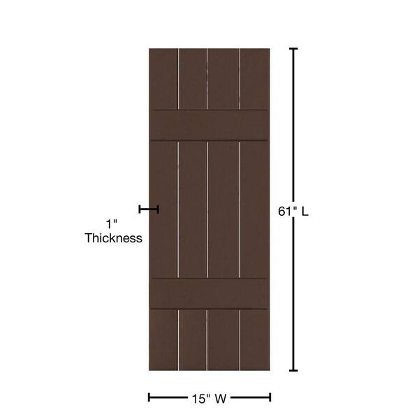 15 in. x 61 in. Exterior Real Wood Pine Board and Batten Shutters Pair Tudor Brown
