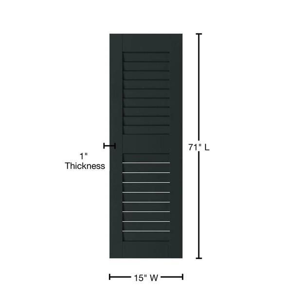 15 in. x 71 in. Exterior Real Wood Pine Louvered Shutters Pair Dark Green