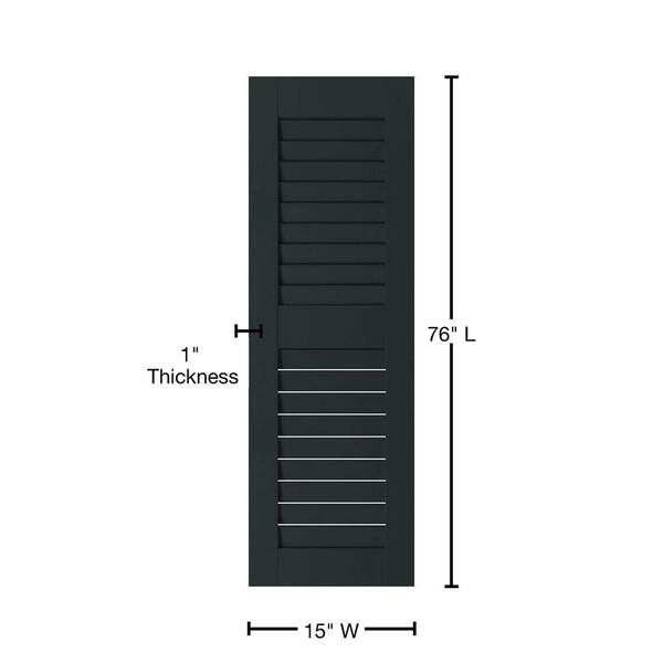 15 in. x 76 in. Exterior Real Wood Sapele Mahogany Louvered Shutters Pair Dark Green