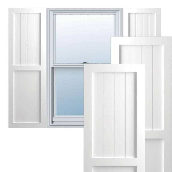 15 in. x 76 in. True Fit PVC Farmhouse/Flat Panel Combination Fixed Mount Board and Batten Shutters, White (Per Pair)
