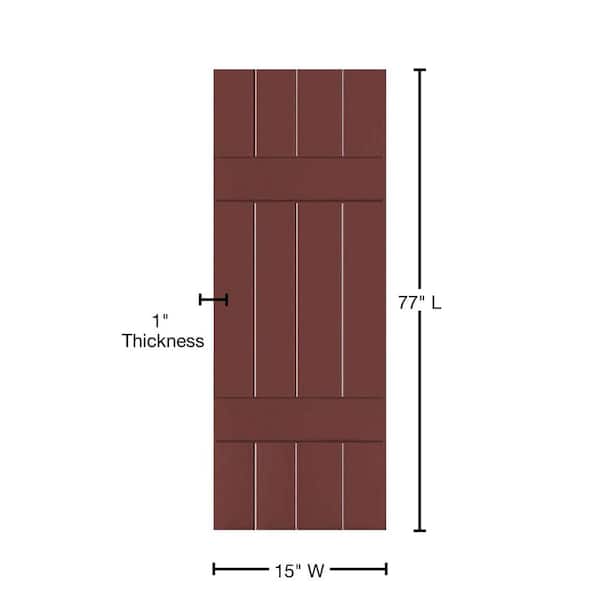 15 in. x 77 in. Exterior Real Wood Sapele Mahogany Board and Batten Shutters Pair Cottage Red