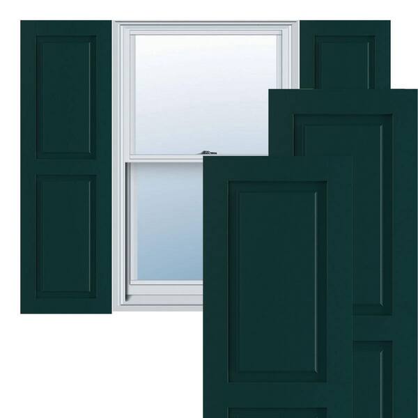 15" x 45" True Fit PVC Two Equal Raised Panel Shutters, Thermal Green (Per Pair)