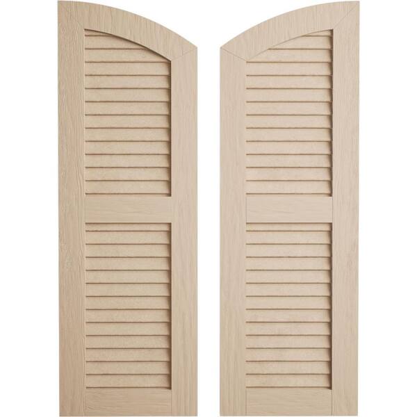 15" x 56" Timberthane Polyurethane Rough Sawn 2-Equal Louvered with Elliptical Top Faux Wood Shutters Pair in Primed