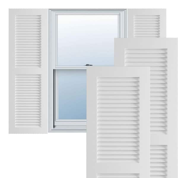15" x 62" True Fit PVC Two Equal Louver Shutters, White (Per Pair)