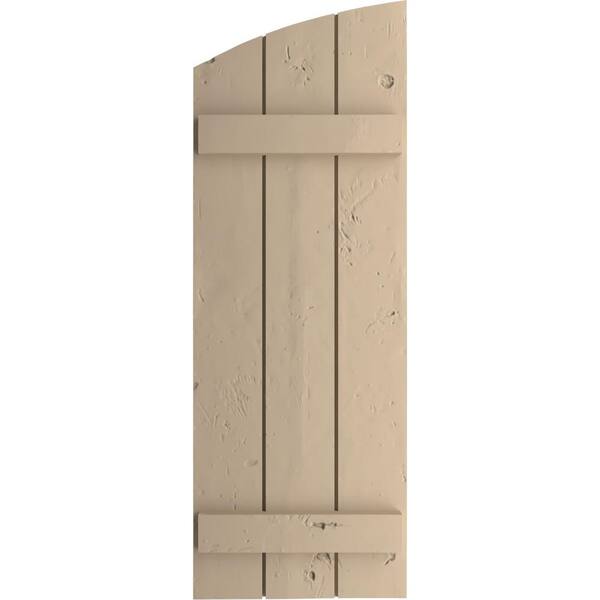16-1/2 in. x 62 in. Polyurethane Knotty Pine Three Board Joined Board-n-Batten Elliptical Top Shutters Primed Tan