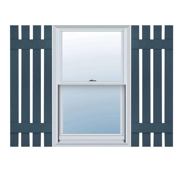 16-1/4 in. x 39 in. Lifetime Vinyl Custom Four Board Spaced Board and Batten Shutters Pair Classic Blue