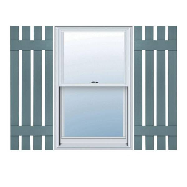 16-1/4 in. x 43 in. Lifetime Vinyl Custom Four Board Spaced Board and Batten Shutters Pair Wedgewood Blue