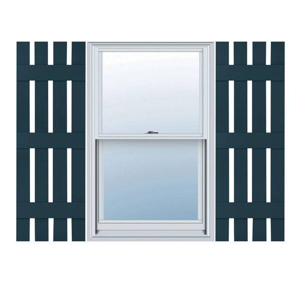 16-1/4 in. x 57 in. Lifetime Vinyl Custom Four Board Spaced Board and Batten Shutters Pair Midnight Blue