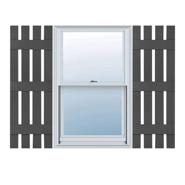 16-1/4 in. x 67 in. Lifetime Vinyl Custom Four Board Spaced Board and Batten Shutters Pair Tuxedo Grey