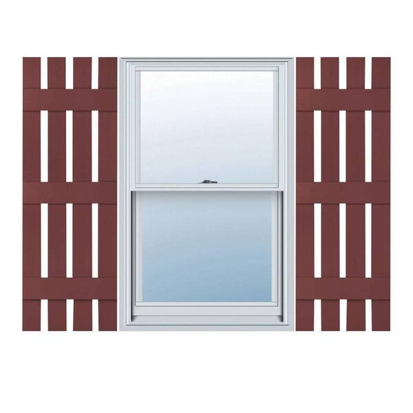 16-1/4 in. x 84 in. Lifetime Vinyl Custom Four Board Spaced Board and Batten Shutters Pair Wineberry