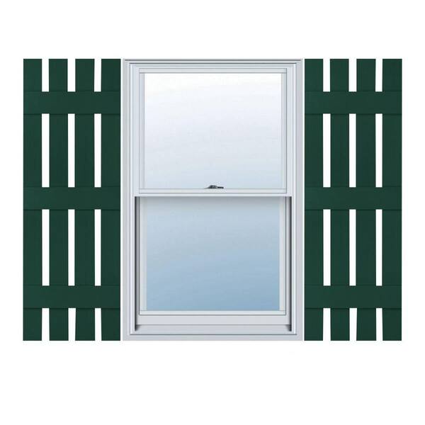 16-1/4 in. x 90 in. Lifetime Vinyl Custom Four Board Spaced Board and Batten Shutters Pair Midnight Green