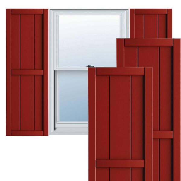16-1/8 in. x 43 in. True Fit PVC 3-Board Framed Board and Batten Shutters in Fire Red (Per Pair)