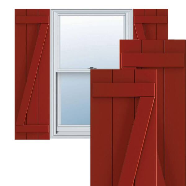 16-1/8 in. x 49 in. True Fit PVC Three Board Joined with Z-Bar Board and Batten Shutters Pair in Fire Red
