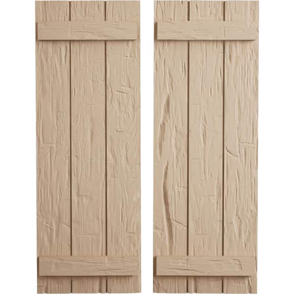 16.5 in. x 24 in. Timberthane Polyurethane 3-Board Joined Board-n-Batten Hand Hewn Faux Wood Shutters Pair