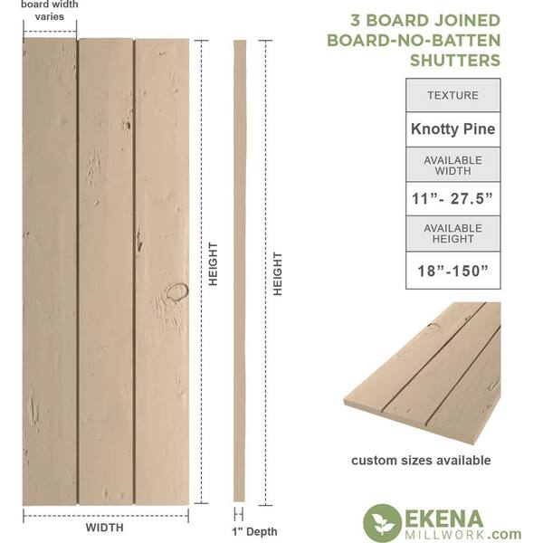 16.5 in. x 24 in. Timberthane Polyurethane 3-Board Joined Board-n-Batten Knotty Pine Faux Wood Shutters, No Batten Pair