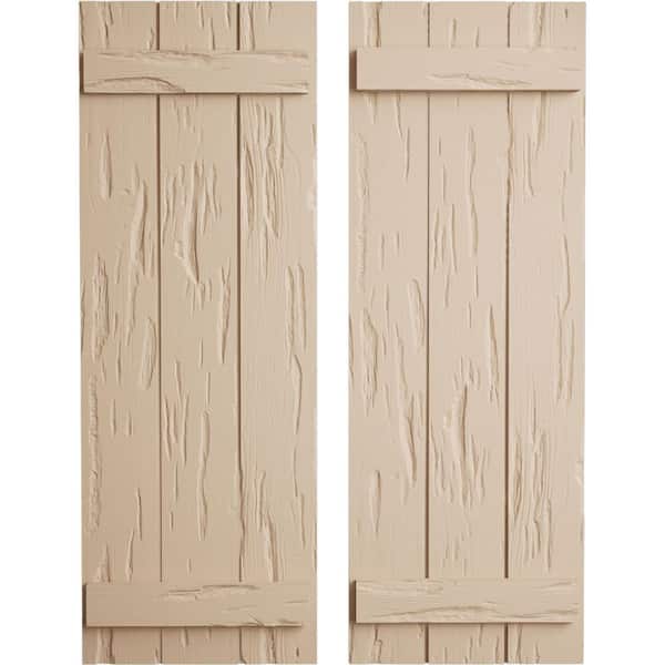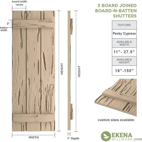 16.5 in. x 24 in. Timberthane Polyurethane 3-Board Joined Board-n-Batten Pecky Cypress Faux Wood Shutters Pair