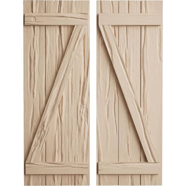 16.5 in. x 26 in. Timberthane Polyurethane 3-Board Joined Board-n-Batten Riverwood Faux Wood Shutters w/Z-Board Pair