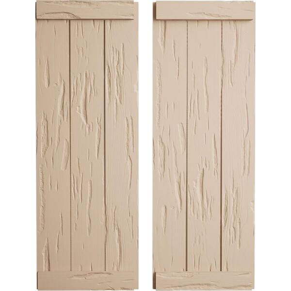 16.5 in.x 28 in. Timberthane Polyurethane 3-Board Joined Board-n-Batten Pecky Cypress Faux Wood Shutters,End Batten Pair