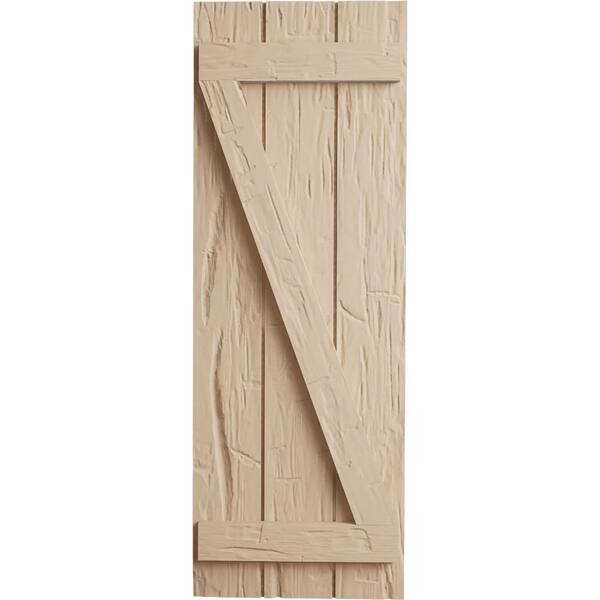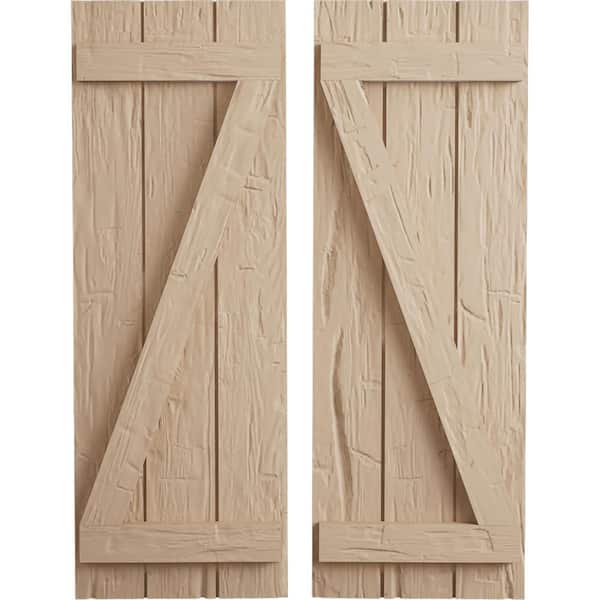 16.5 in. x 34 in. Timberthane Polyurethane 3-Board Joined Board-n-Batten Hand Hewn Faux Wood Shutters w/Z-Board Pair