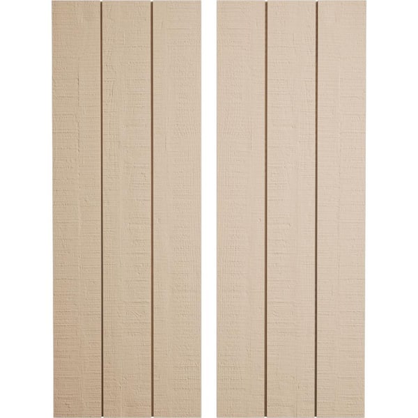 16.5 in. x 36 in. Timberthane Polyurethane 3-Board Joined Board-n-Batten Rough Cedar Faux Wood Shutters, No Batten Pair