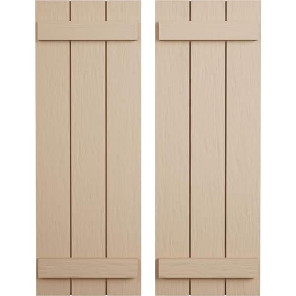16.5 in. x 36 in. Timberthane Polyurethane 3-Board Joined Board-n-Batten Rough Sawn Faux Wood Shutters Pair