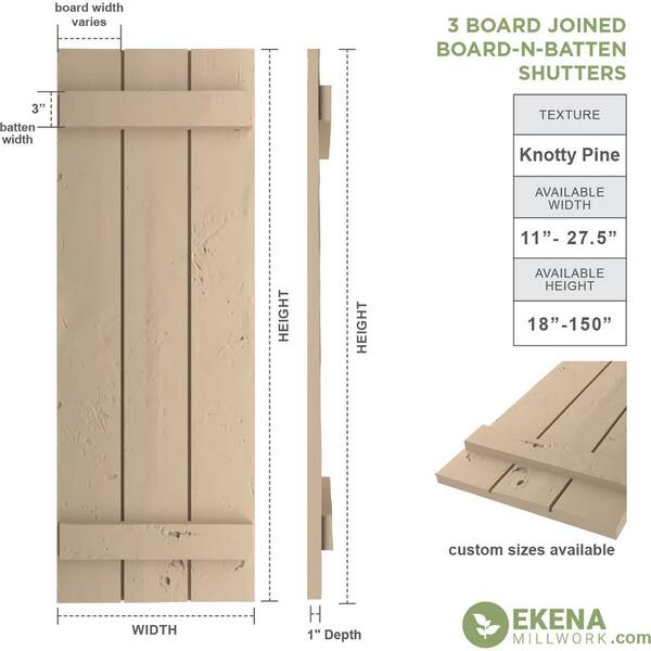 16.5 in. x 38 in. Timberthane Polyurethane 3-Board Joined Board-n-Batten Knotty Pine Faux Wood Shutters Pair