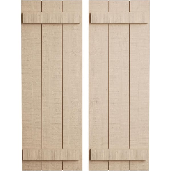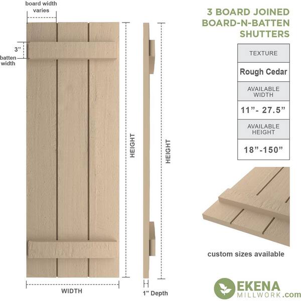 16.5 in. x 38 in. Timberthane Polyurethane 3-Board Joined Board-n-Batten Rough Cedar Faux Wood Shutters Pair
