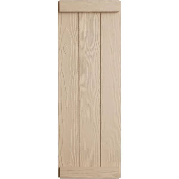 16.5 in. x 40 in. Timberthane Polyurethane 3-Board Joined Board-n-Batten Sandblasted Faux Wood Shutters, End Batten Pair