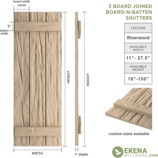 16.5 in. x 42 in. Timberthane Polyurethane 3-Board Joined Board-n-Batten Riverwood Faux Wood Shutters Pair