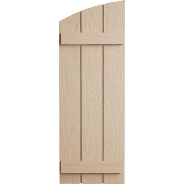 16.5 in. x 52 in. Polyurethane Rough Sawn 3 Board Joined Board-n-Batten Elliptical Top Faux Wood Shutters Primed Tan