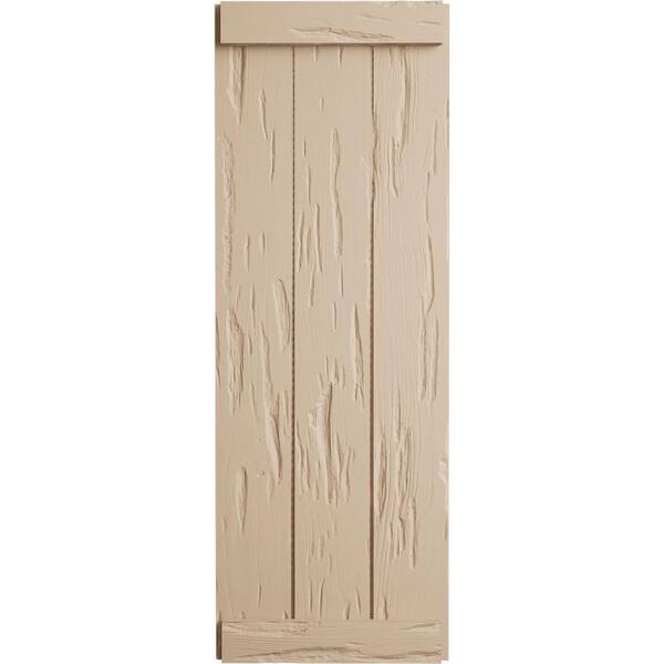 16.5 in.x 52 in. Timberthane Polyurethane 3-Board Joined Pecky Cypress Faux Wood Board-n-Batten Shutters,End Batten Pair